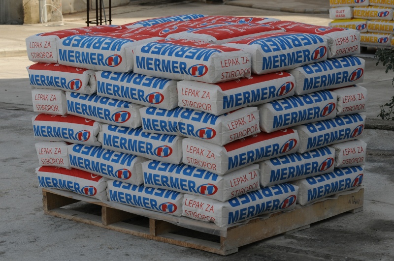 Mermerni granulat, mineralna veziva i aditivi.